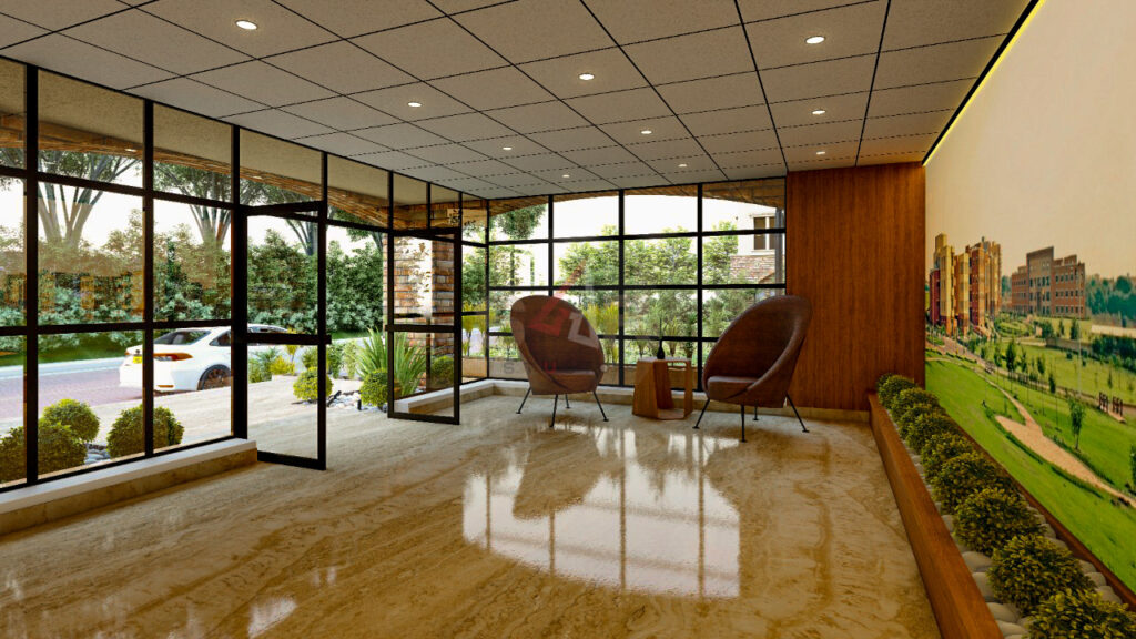 This project involves the complete interior design and execution of the Admin Lobby at COMSATS University Islamabad (Islamabad Campus). The scope of work covered the entire interior development, from initial concept and space planning to material selection, lighting design, ceiling treatments, wall finishes, and furniture layout.