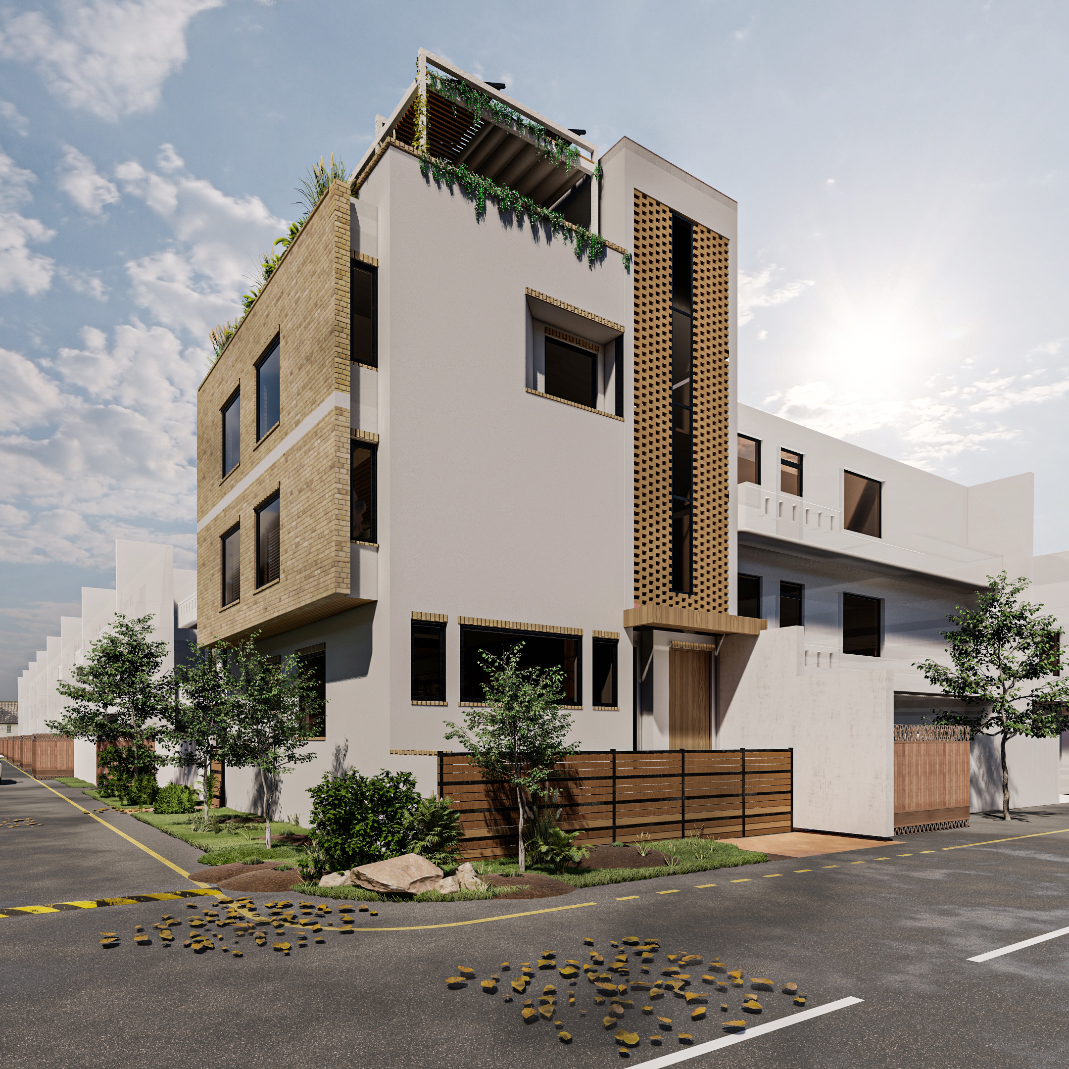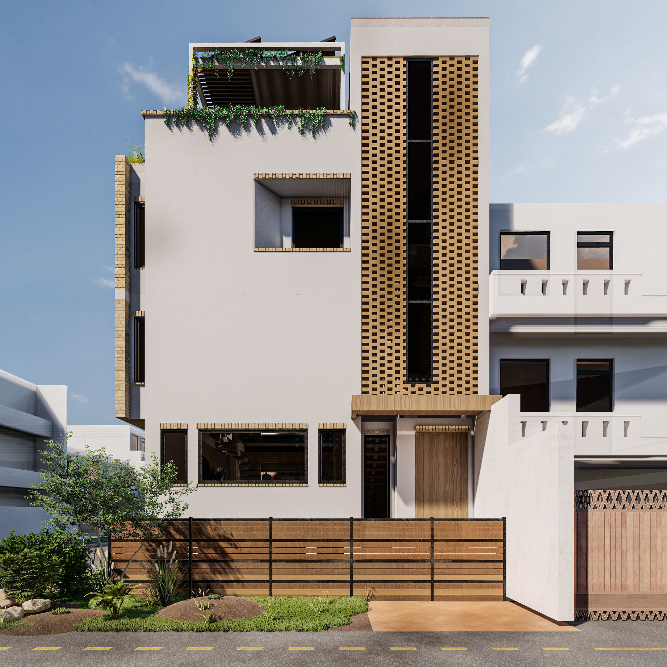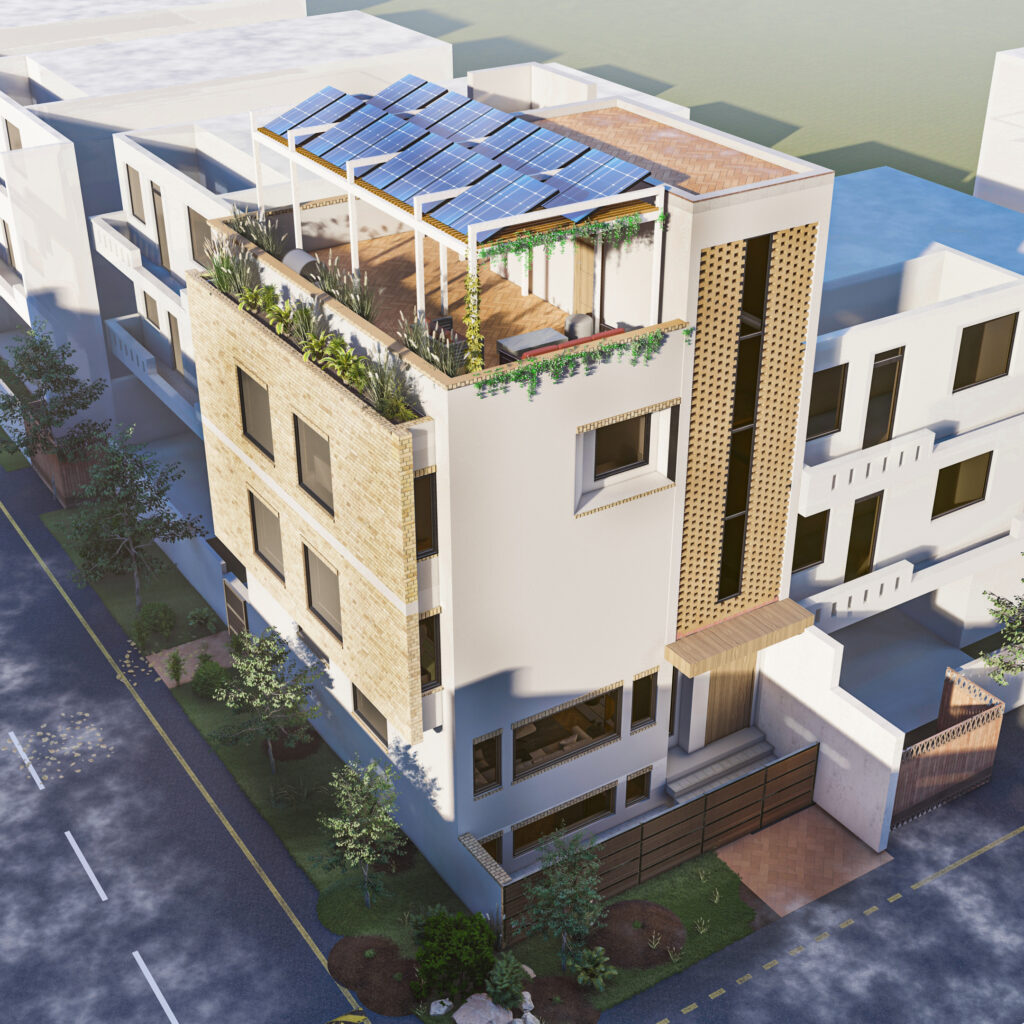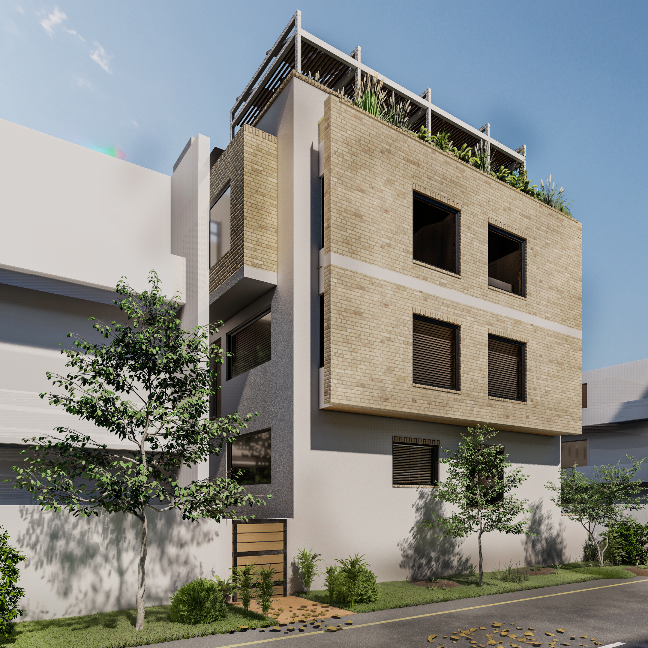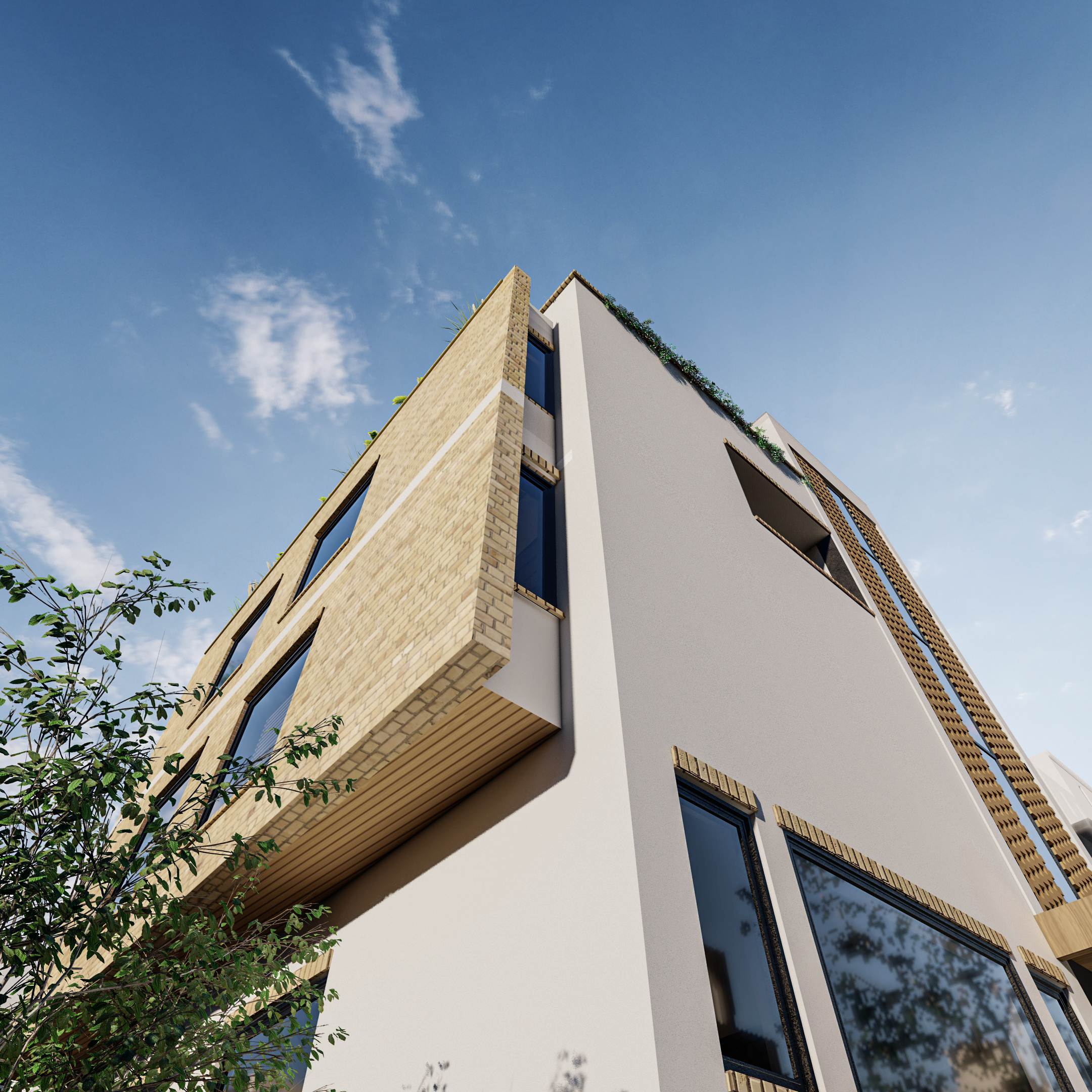 involved a challenging layout and façade development due to limited plot size and multiple functional